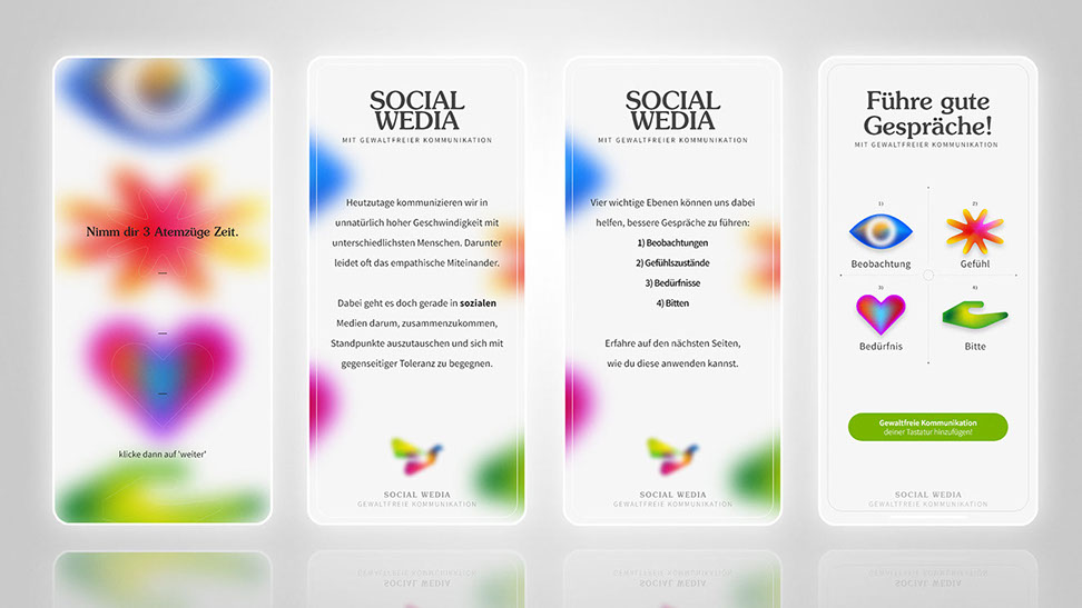 The effectiveness of the NVC technique in a social media context has been confirmed by putting the concept to test within the potential target audience in form of a digital minimal viable prototype (MVPr). Participants were asked to respond to provocative posts in realistic comment column scenarios. First in a comparison round and then using the social media prototype. Results indicated a shift towards more emphatic and deescalating behaviour.