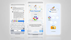 The vibrant icons referring to the four stages in combination with a question pose an external trigger that provokes and simplifies the interaction.